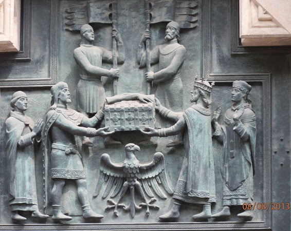 St Vitus Katedraline doğru yolumuza devam ediyoruz. St. Vitus Katedrali gerçekten etkileyici, büyük ve neredeyse şehrin her yerinden görülebilen muhteşem bir yapı. 14. yüzyılda yapımına başlanan yapının Gotik doğu kısmında bir kule ve batı kısmında da 19. ve 20. Yüzyıl arasında yapılmış Neo Gotik tarzda iki kule bulunmakta. Katedralin dış süslemesi çok dikkat çekici şekilde korkutucu ve şeytani yaratık motifleriyle süslenmiş. Dışarı doğru uzanan bu motifler esasında su olukları. Yağmur sularının tahliye görevini üstleniyorlar. Ancak özellikle yağmurlu havalarda, zaten görkemli ve yüksek olan bu katedralin ihtişamı bu oluklardan gürül gürül akan sular ile daha da inanılmaz bir hal alıyor ve özellikle taşradan gelip ilk defa böyle görkemli dini bir bina gören o dönemin cahil insanları ipnotize olmuş gibi Hristiyanlığın etkisine kapılıyorlarmış. Dışı bu kadar korkunç ve ürkütücü olan katedralin içi ise dışının tam aksine vitraylar sayesinde oldukça aydınlık ve yüksek tavanı sayesinde de oldukça ferah. Katedralin kapısındaki kabartma rölyefler ise göz kamaştırıcı...